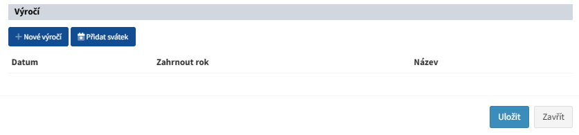 - zde máte přehled všech vámi vytvořených výročí pro subjekty typu osoba