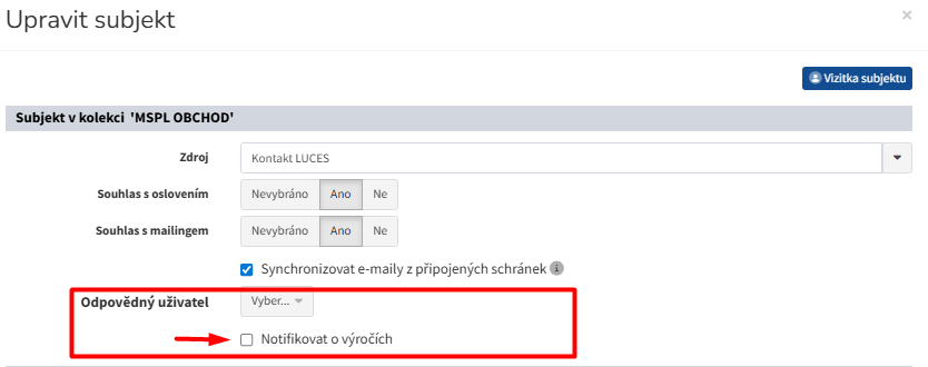 - přidání výročí se provádí v možnosti "upravit subjekt"